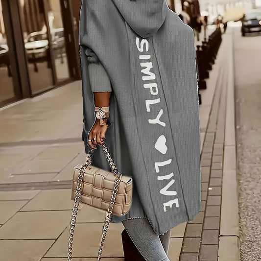 Elvira - Lång Hooded Cardigan med Textdetalj