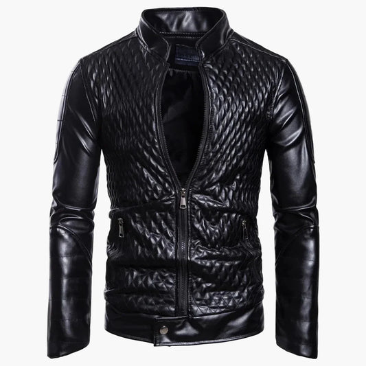 Herrjacka med quiltad design och modern rockstil – perfekt för vardag och fest