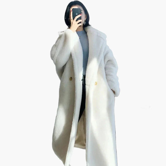 Dam Teddy Pälsrock Lång Oversize Vinterjacka Trendig