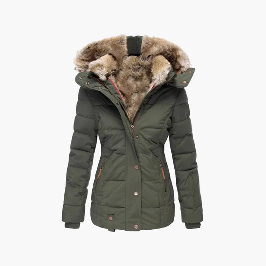 Dam Vinterjacka med Figurnära Passform och Fuskpäls – Elegant Vardagsstil