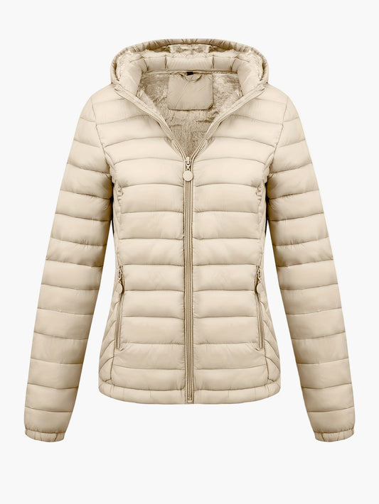 Dam vinterjacka med huva och dragkedja – elegant vardagsstil