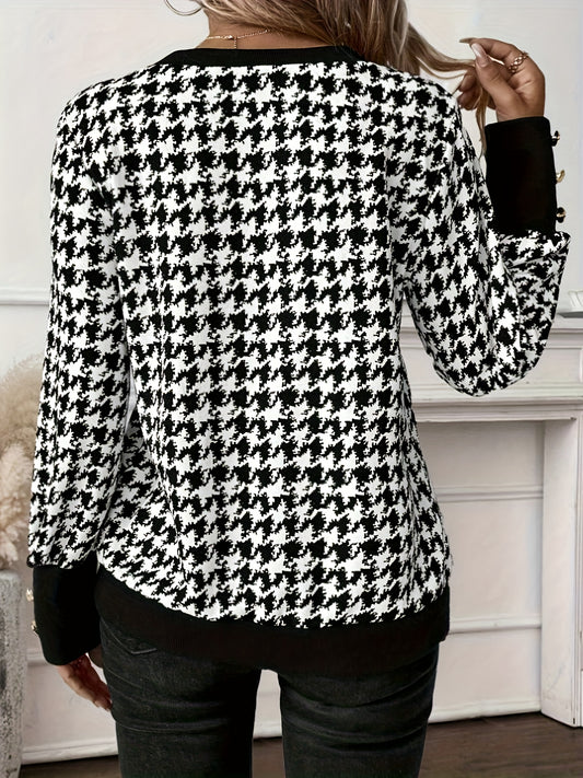 Gabrielle – Houndstooth V-ringad Tröja för Kvinnor