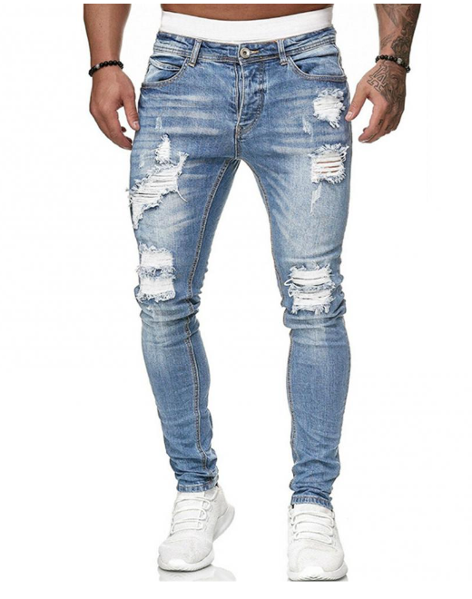 Neil – Slimmade Jeans med Rippad Design för Herrar