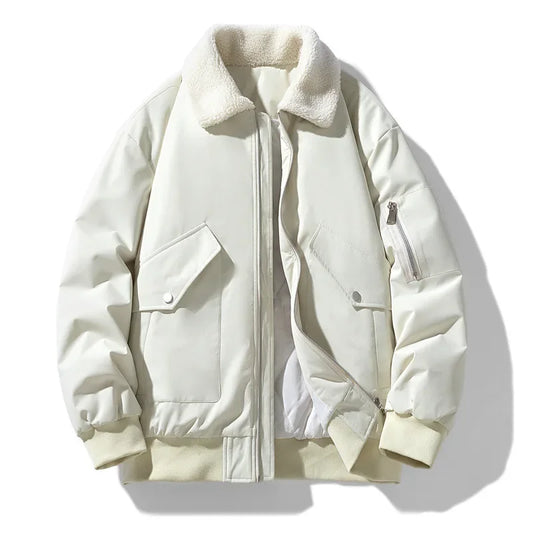 Herr Bomberjacka med Fårskinnskrage – Elegant och Varm Vinterjacka för Stad och Fritid