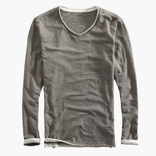 Herr långärmad V-ringad tröja med lager-på-lager-look – Smart-casual stil för vardagsbruk