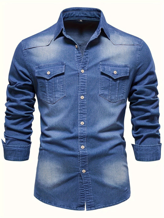 Liam – Denim Herrskjorta med Turn-Down Krage och Långärmad Design