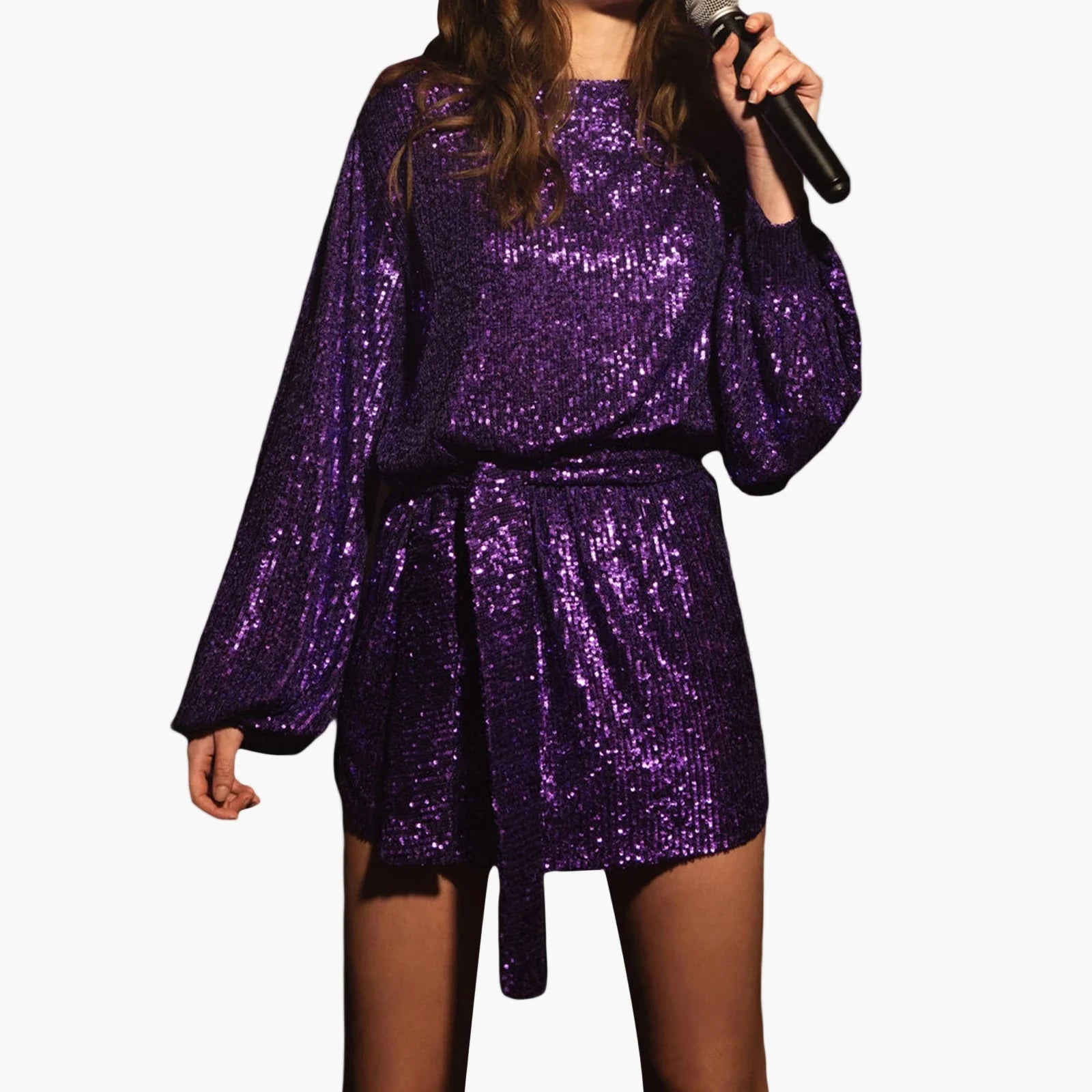 Dam Paljettklänning Festklänning med Bälte – Glittrig Elegant Partyklänning
