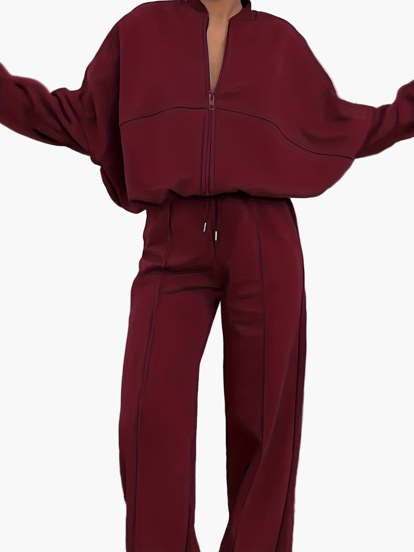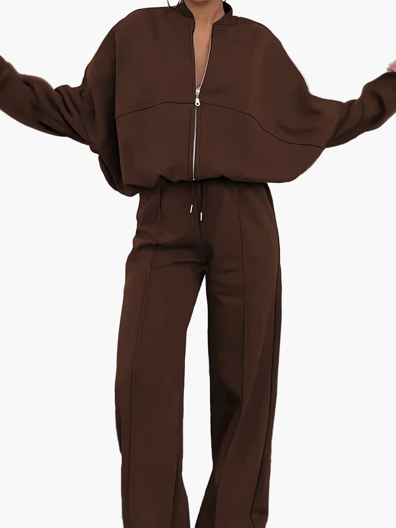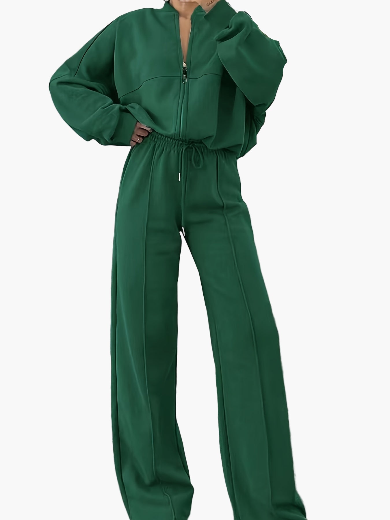 Damers avslappnade träningsset med dragkedja – sportigt och modernt tvådelat vardagsset