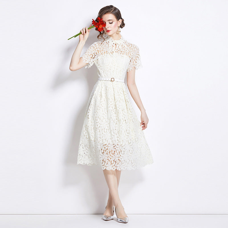 Damklänning i elegant spets, midjemodell, perfekt för fest och bröllop