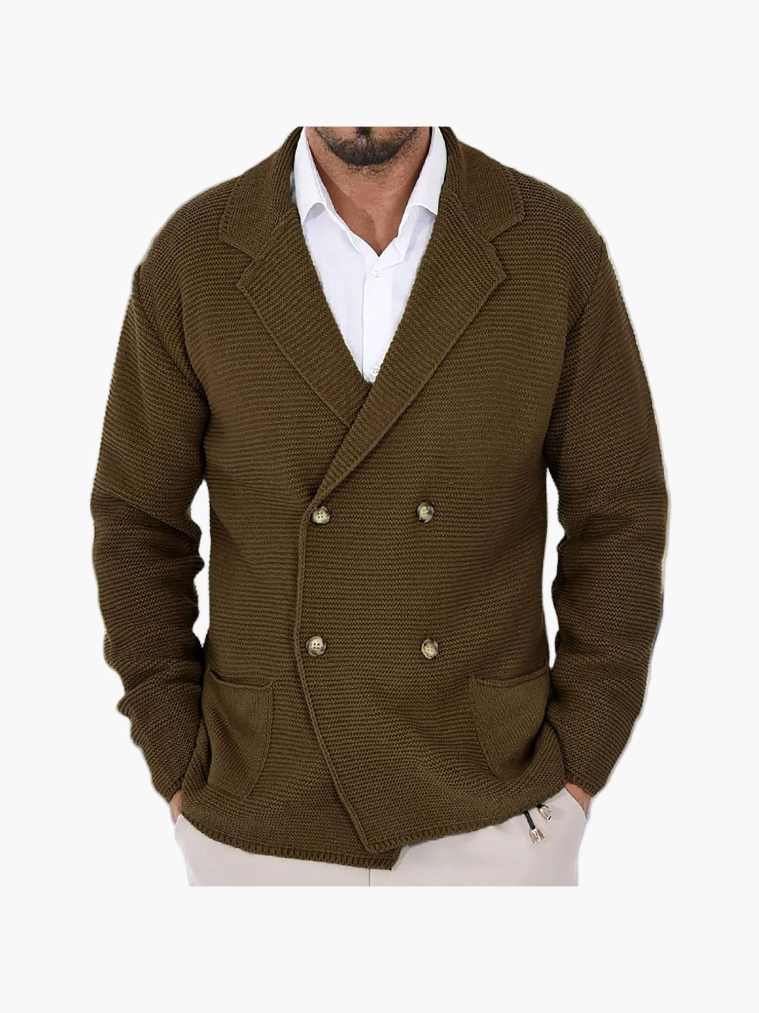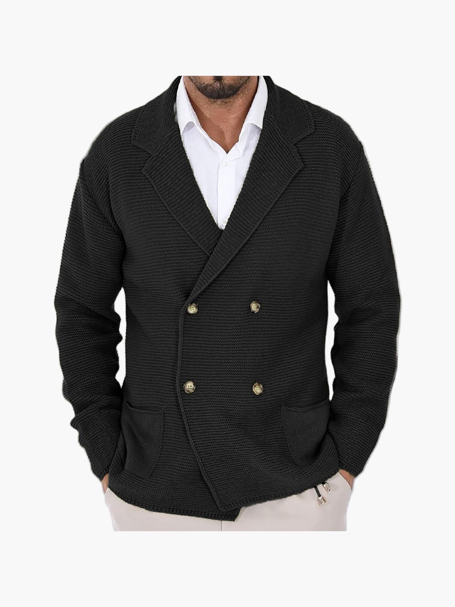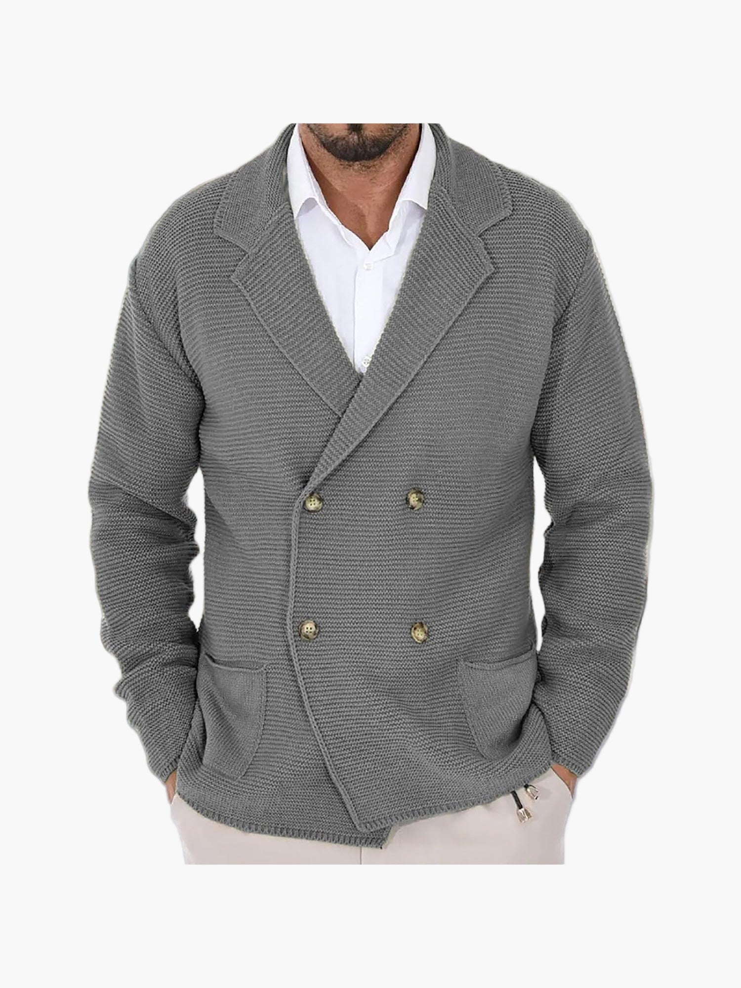 Herr Dubbelknäppt Stickad Kavaj – Elegant och Avslappnad för Alla Tillfällen