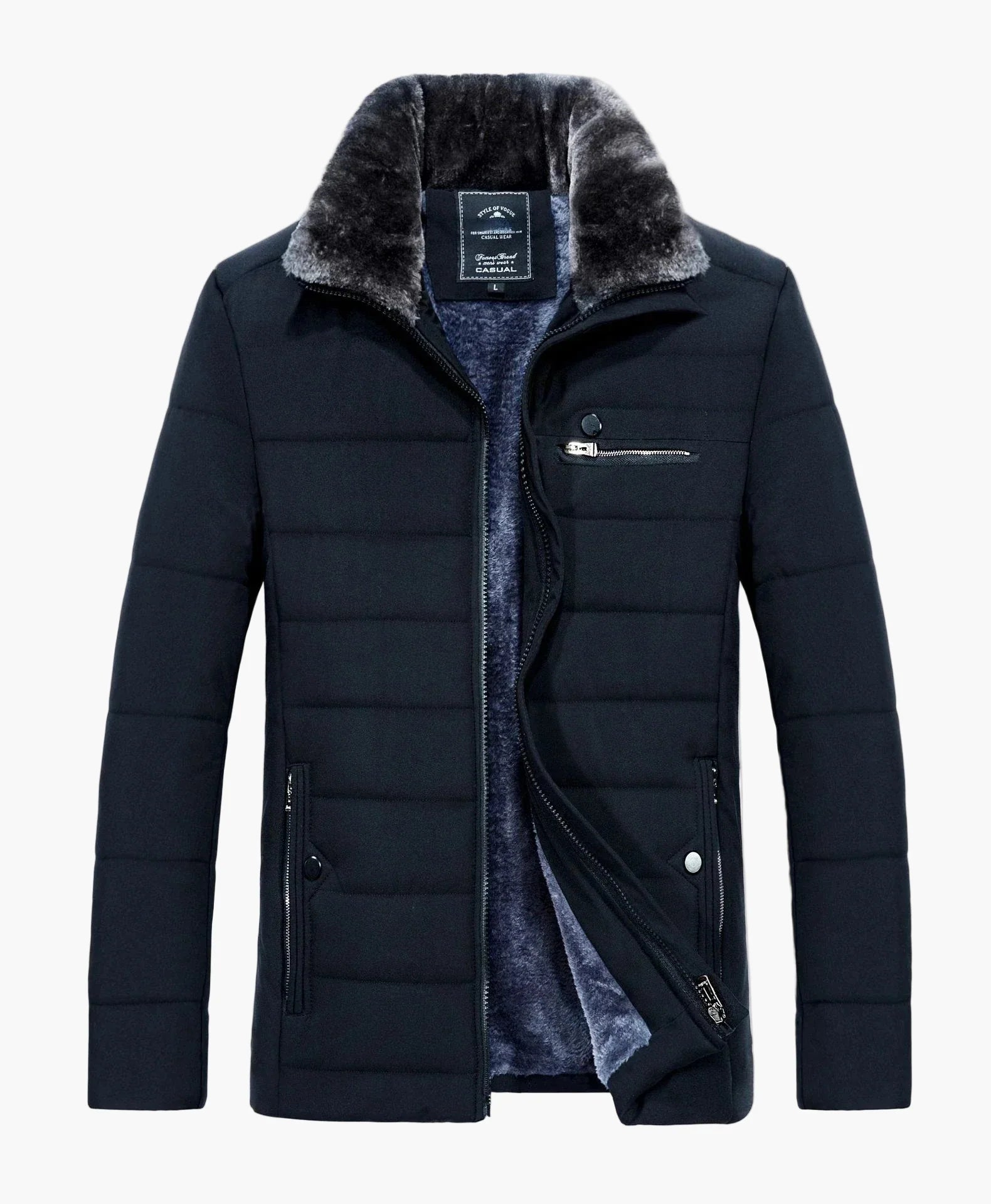 Herrjacka vinter casual med ståkrage och fickor – perfekt för vardagsbruk och stil