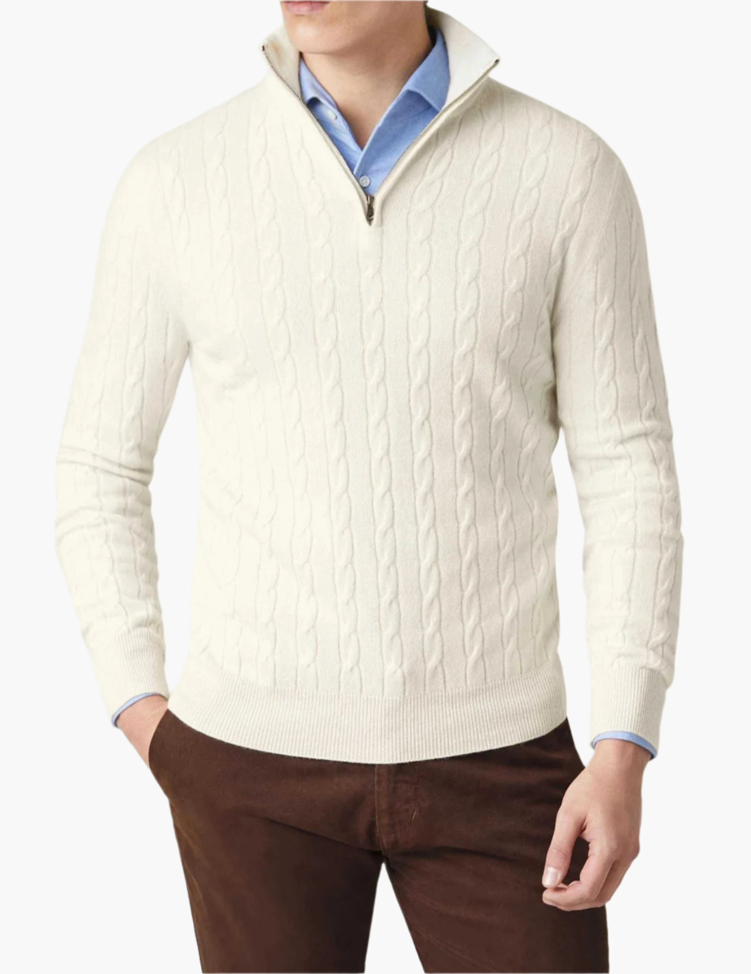 Herrstickad tröja med dragkedja och kabelmönster – Elegant vardagsstil för arbete och fritid