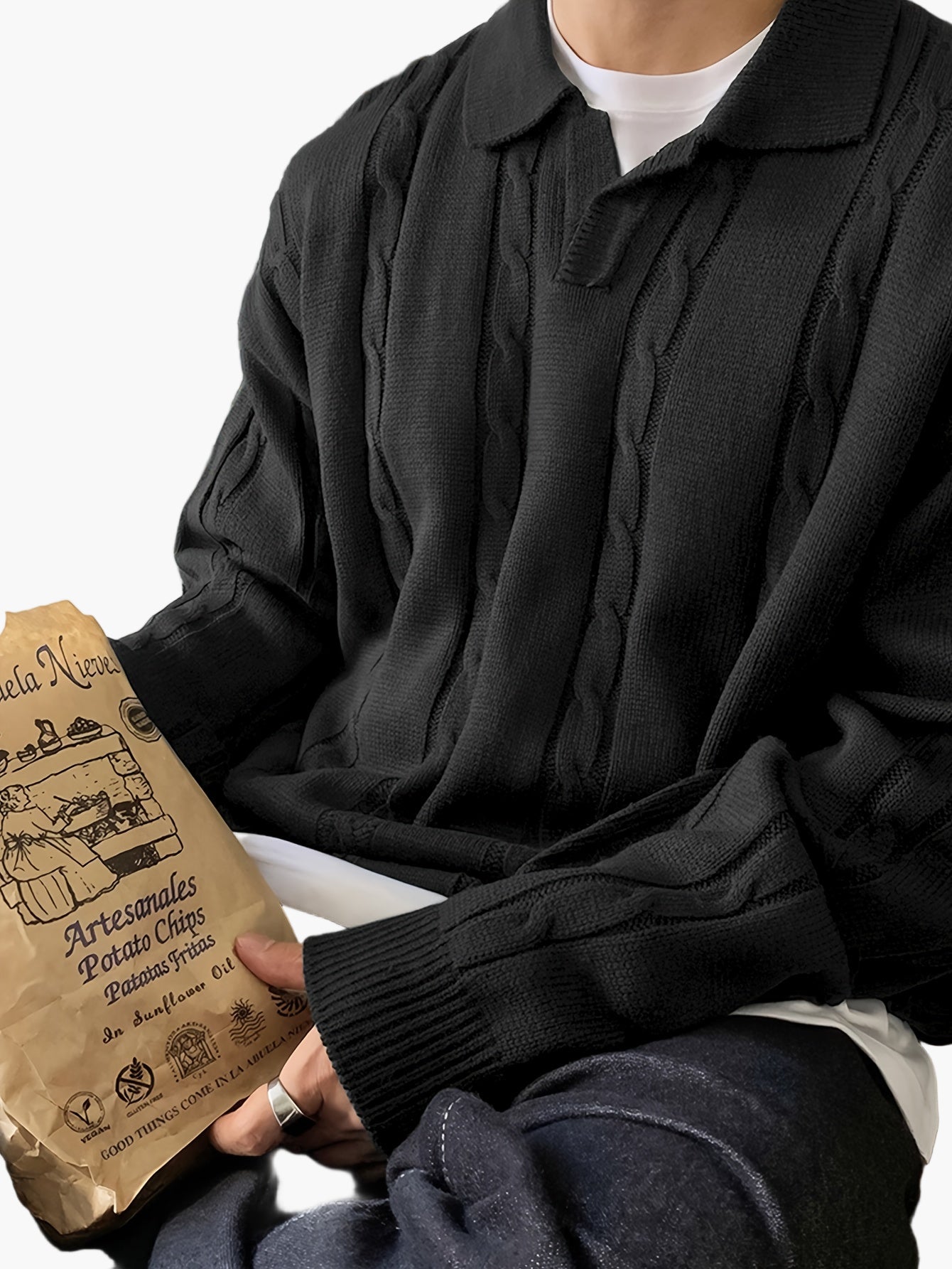 Herrtröja med kabelstickat mönster och polokrage – Avslappnad stil för vardagsbruk