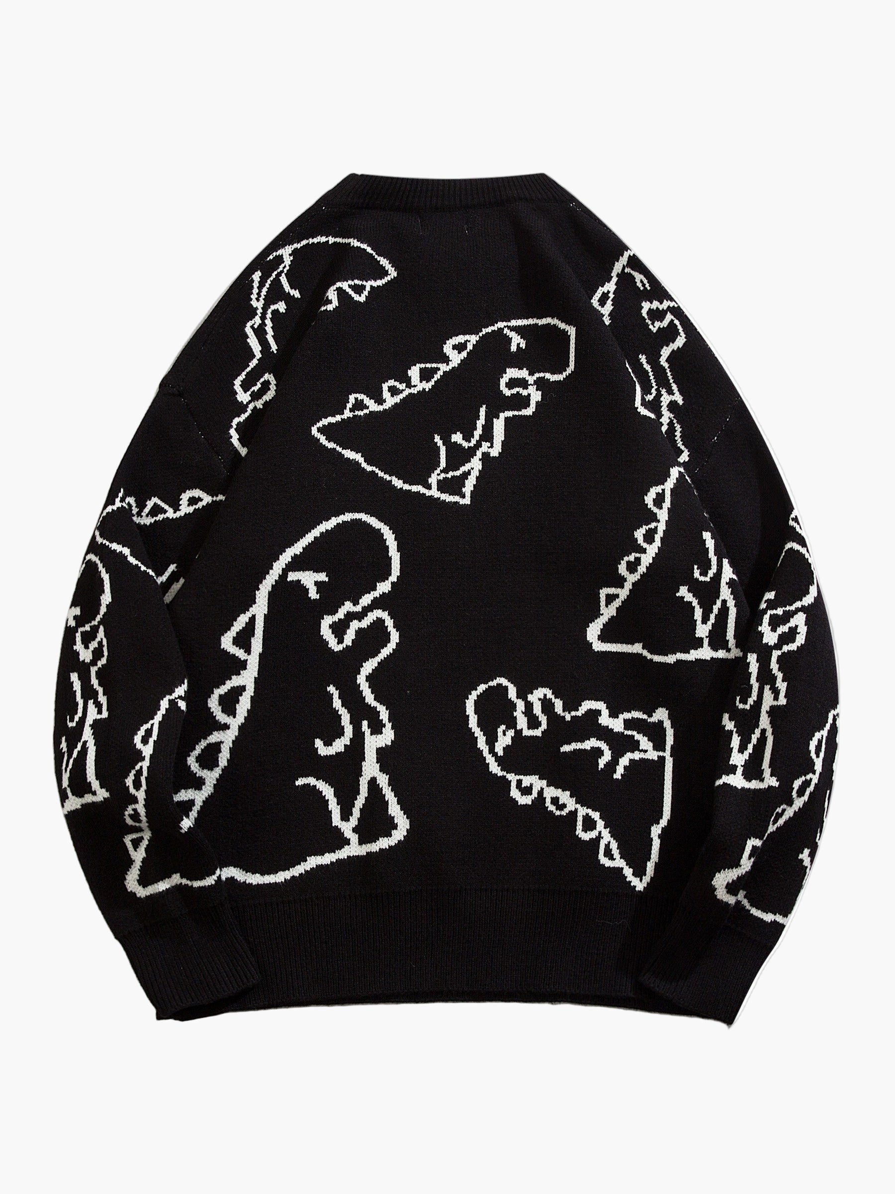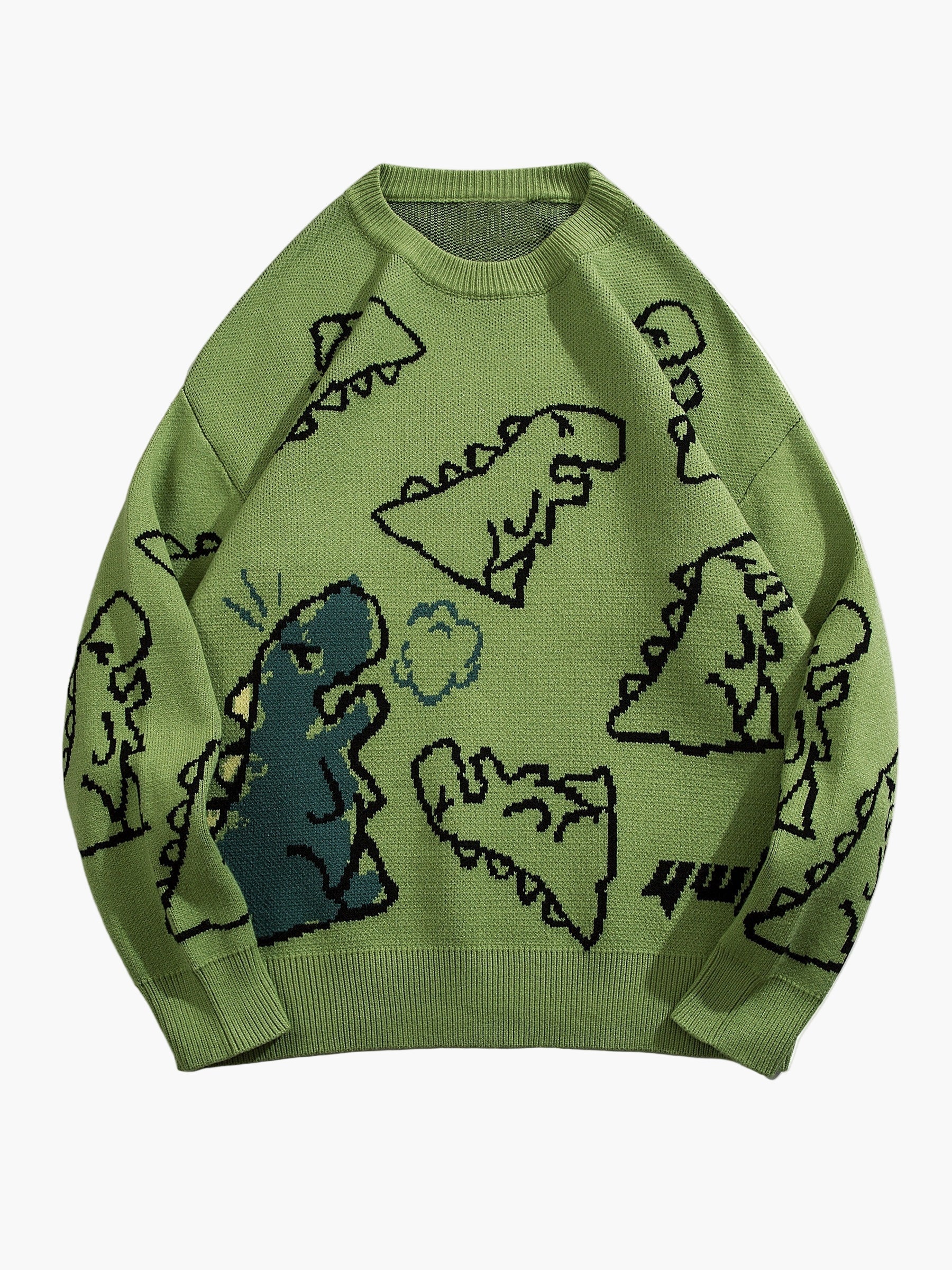 Herrtröja med tecknad dinosauriedesign, avslappnad streetwear för höst och vinter