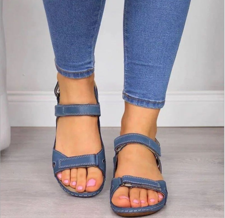 Rachael – Stora Storlekar Avslappnade Rund Tå Låg Klack Enfärgade Sandaler för Kvinnor